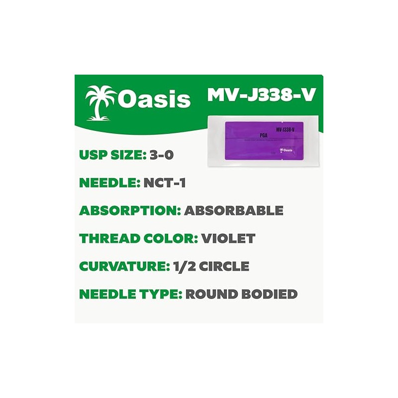 Oasis PGA (Polyglycolic Acid) Surgical Suture, 3-0, (CT-1) 1/2 37mm Round Bodied Needle, 75cm, 12/Box, Veterinary Use