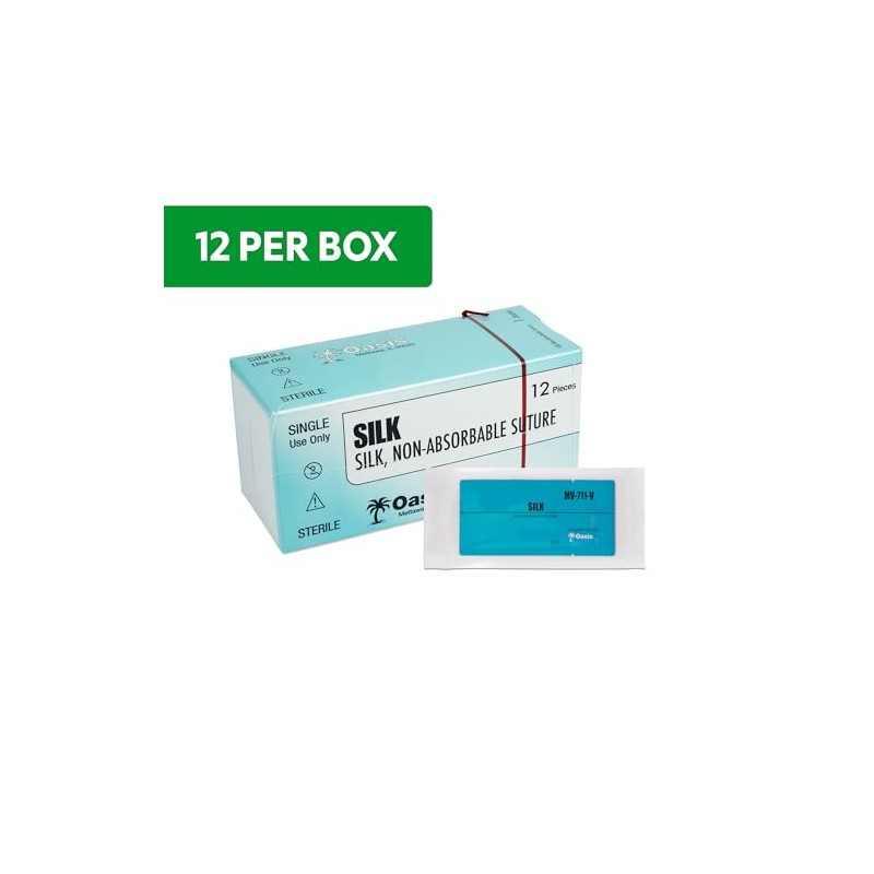 Oasis Silk Surgical Suture, 6-0, (C-3) 3/8 13mm Reverse Cutting Needle, 45mm, 12/Box, Veterinary Use