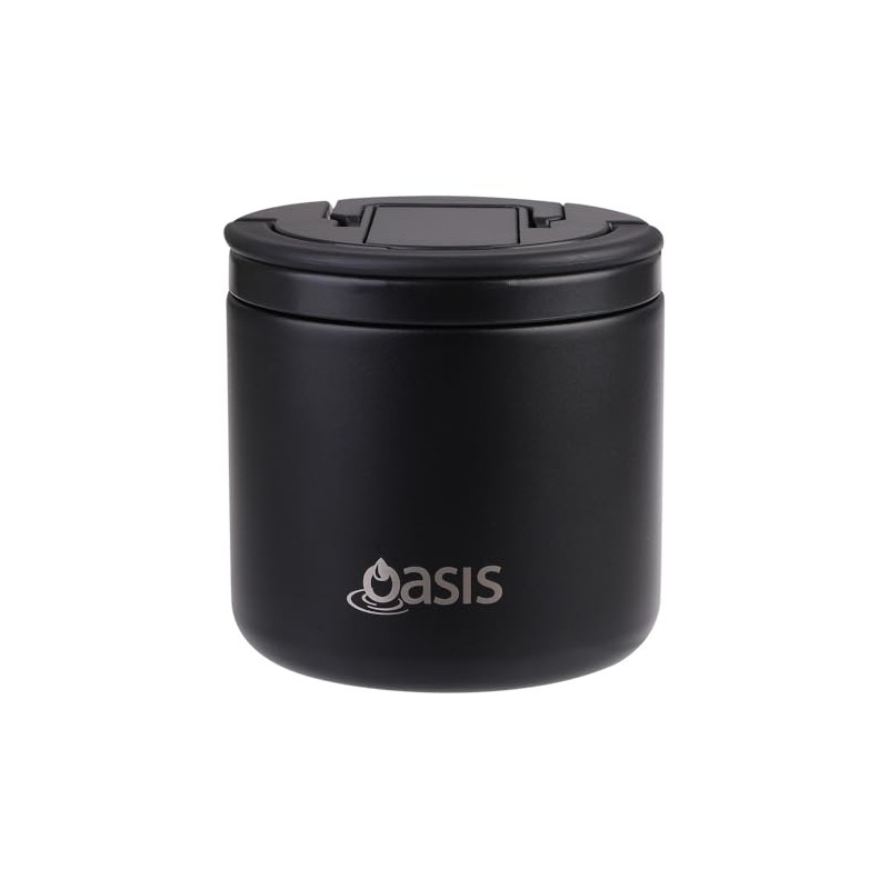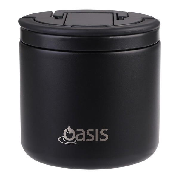 Oasis Stainless Steel Double Wall Insulated Food Flask with Quick Release Lid & Spork 550 ml - Black