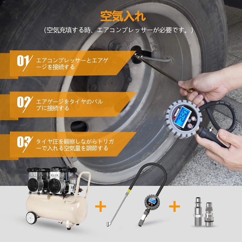 - (3 in 1) Equipped with 3 functions: air filling, tire pressure measurements, and air release to ensure that your tires are always ready, and it supports safe driving. (Air compressor is required for air filling)