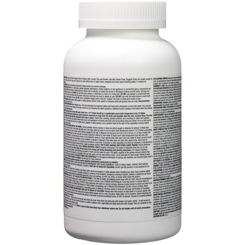 - Non-acid crystals clear sluggish drains and prevent clogs