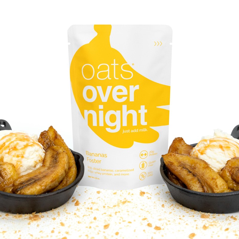 Oats Overnight Bananas Foster - Overnight Oats with 20g Whey Protein, High Fiber Breakfast Protein Shake - Gluten Free Oatmeal, Non GMO High Protein Oatmeal (2.8 oz per Meal) (8 Pack)