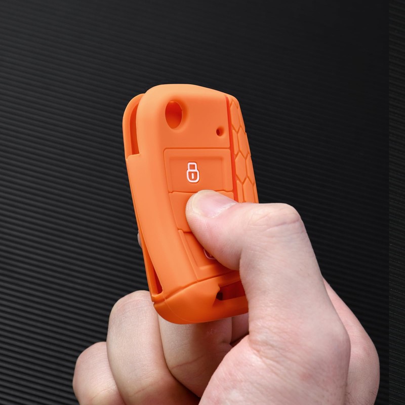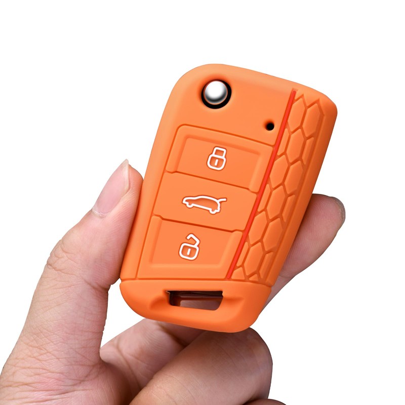 OATSBASF OATSBASF Car Key Case For VW, Key Case Compatible with VW Golf 7 MK7Silicone Key Case, Key Box Cover for VW Polo, Skoda, Tiguan, 3 Buttons (G-Orange)