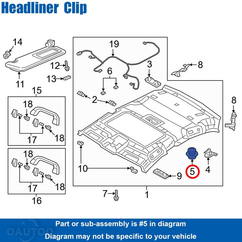 - Other Names: Headliner Clip, Body C-Pillar Trim Panel Clip, Body B-Pillar Trim Panel Clip, Liftgate Trim Cover Clip, Liftgate Trim Panel Clip, Quarter Panel Trim Panel Clip, Headliner Retainer, Lower Quarter Trim Fastener, Lower Trim Panel Clip.