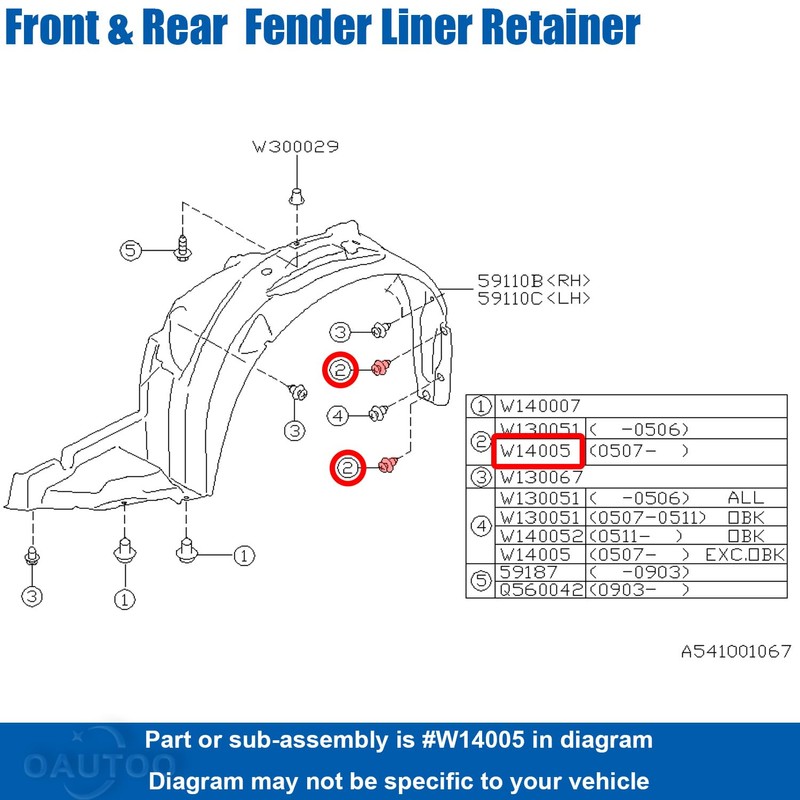 OAUTOO 25pcs Bumper Fender Liner Clip Headlamp Assembly Retainer for Subaru 909140051 BRZ Legacy Outback Tribeca 2006-On