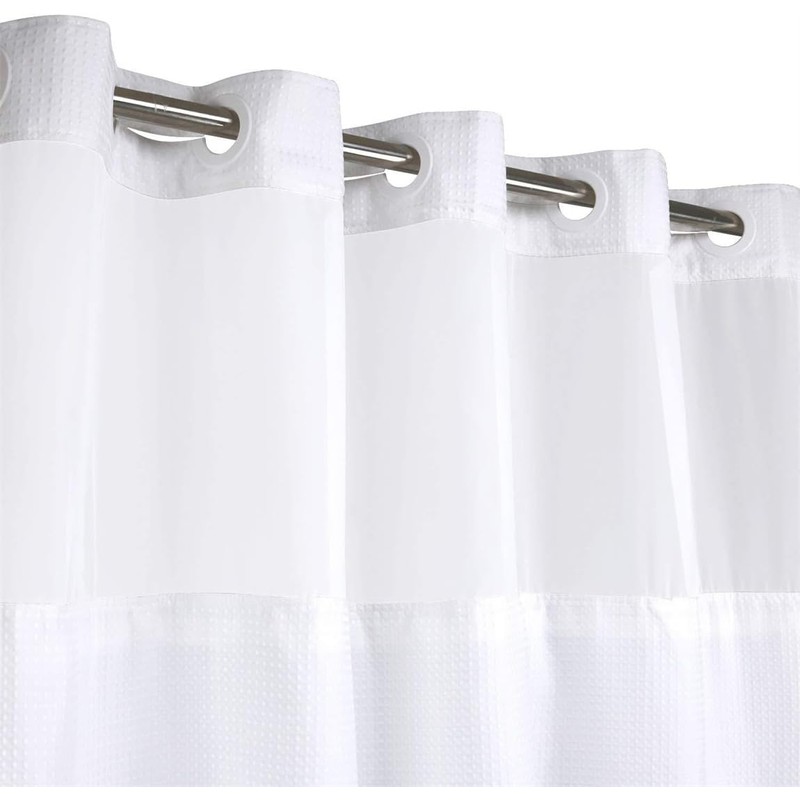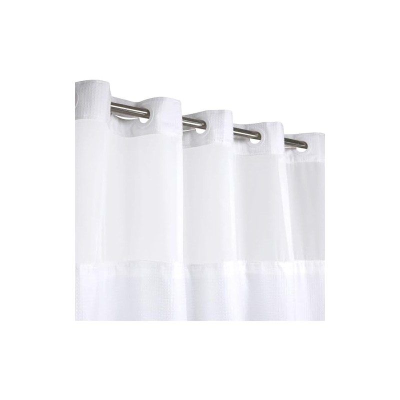 - Double Liner: This hotel grade no hook shower curtain with snap in liner is made of polyester fabric that are soft to touch and long lasting to use.With a replaceable snap-in liner shower curtain liner is made of fabric and easy to remove and clean. The double-layer shower curtain design provides an ultimate waterproof barrier to keep water inside the shower while protecting privacy.