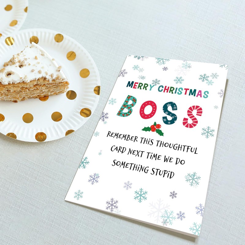 Obbyidk Funny Boss Christmas Card from Team Group, Merry Christmas Card for Boss, Boss Holiday Card, Remember This Card Next Time We Do Something Stupid