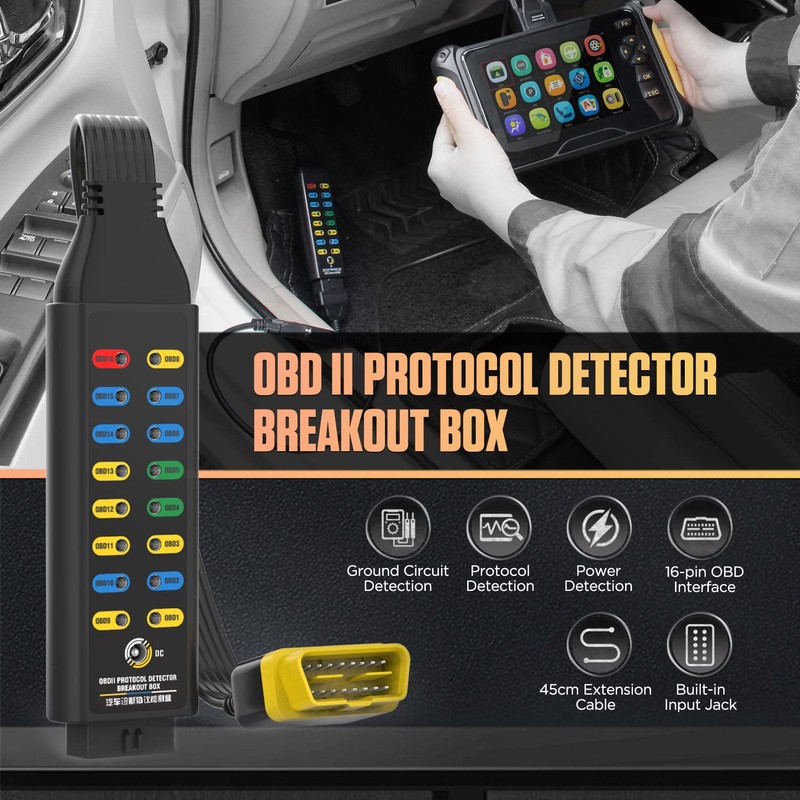 OBD2 Breakout Box OBDII Protocol Detector,OBDII Breakout Box Fault Diagnosis Scan Tool for All OBDII Vehicle, OBD Breakout Box Automotive Can Breakout Box