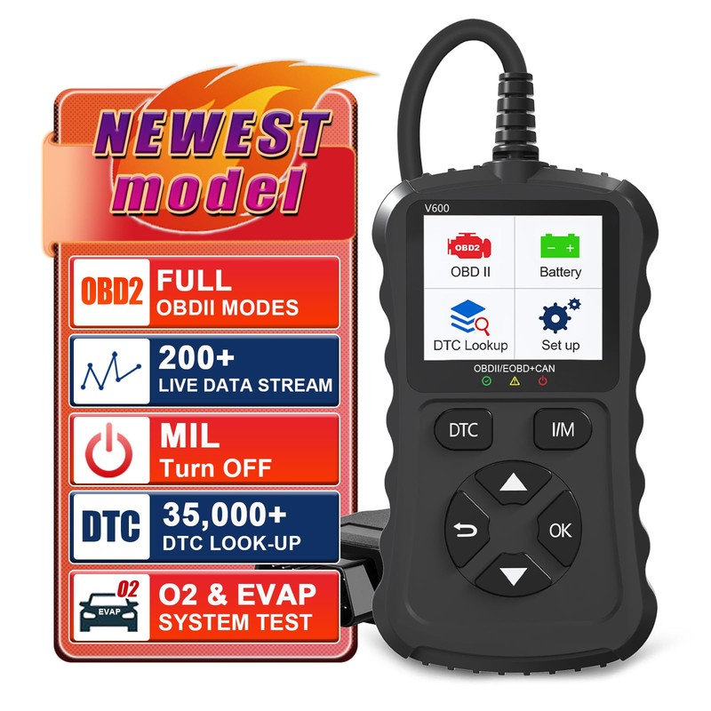 • Professional OBD2 code reader diagnostics: As a professional car scanner, the iKiKin V600 has all the OBD2 functions you need, including reading and clearing codes, turning off engine indicator lights or MILs, viewing real-time data streams, reading I/M ready status, viewing freeze frame, check battery voltage, O2 sensor. 11 vehicle monitoring mode and more. Buy this automatic code reader now!