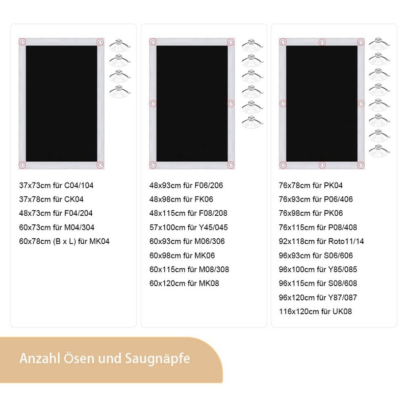 OBdeco Thermal Roller Blind, 100% Blackout Sun Protection, Blackout Roller Blind for Velux Roof Windows, Heat Protection, No Drilling, with Suction Cups, Black, 60 x 98 cm, for MK06