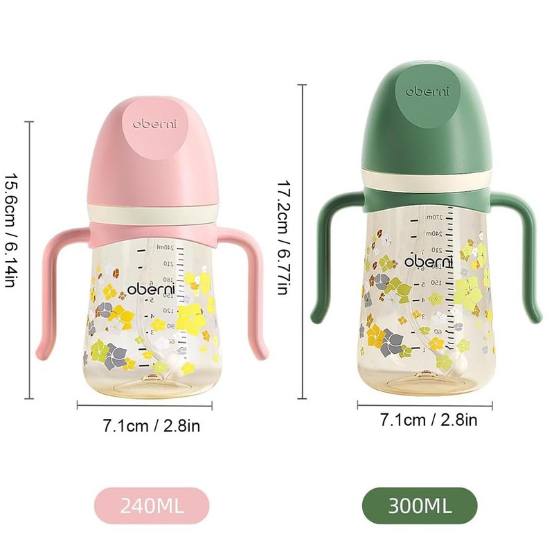 Oberni Baby Sippy Cup 240ml/8oz, Toddler Water Drinking Bottle with Non-Spill Valved Spout and Handle for 6+ Months, Green/3Pack