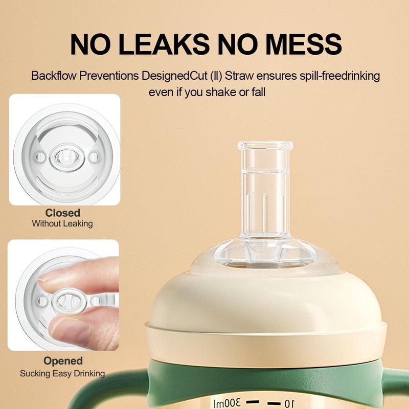 • Spill-Free Valved Spout - Thanks to the v-shaped valve spout, this trainer cup does not spill, water/milk is only released when drinking. And dust lid provides the second sealing for leaking proof, ideal for home or on the go.