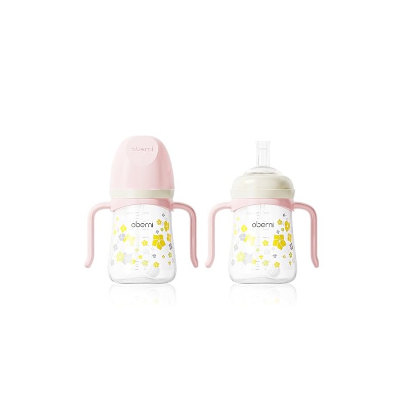 Oberni Toddler Sippy Cup, Weighted Straw Baby Drinking Water Bottle with Valved Spout for 6+ Months, 300ml/10oz/Pink/2Pack