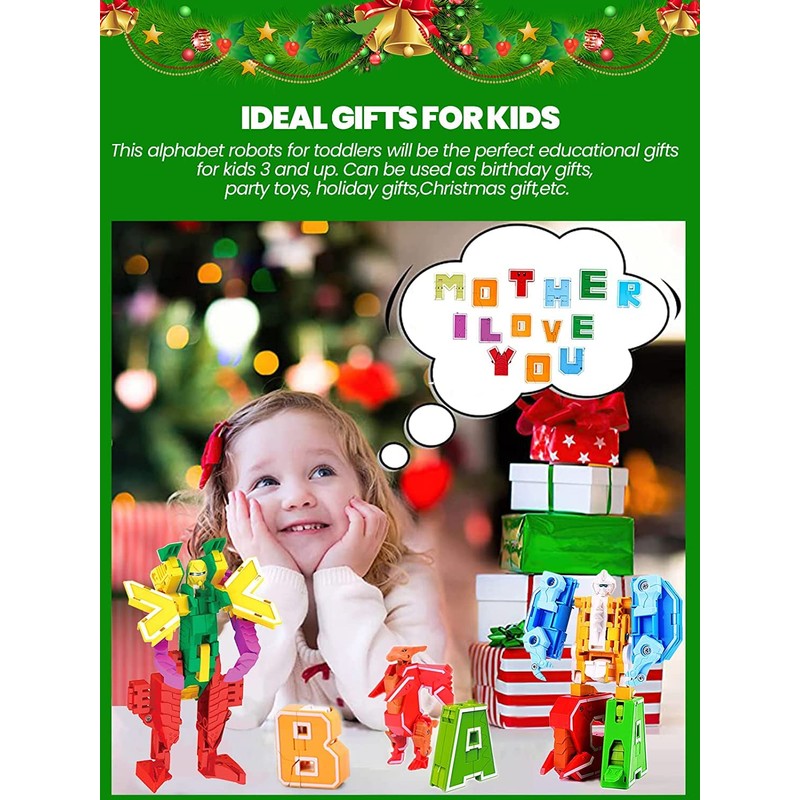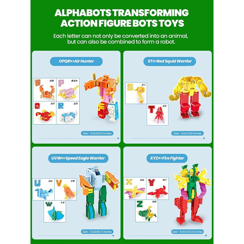 OBEST Pack of 26 Alphabet Robots, A-Z Letter Transformer Toy, for Children, ABC English Learning, DIY Dinosaur/Animals/Robot Educational Deformation Toys, Birthday Gift for 6+ Years Children