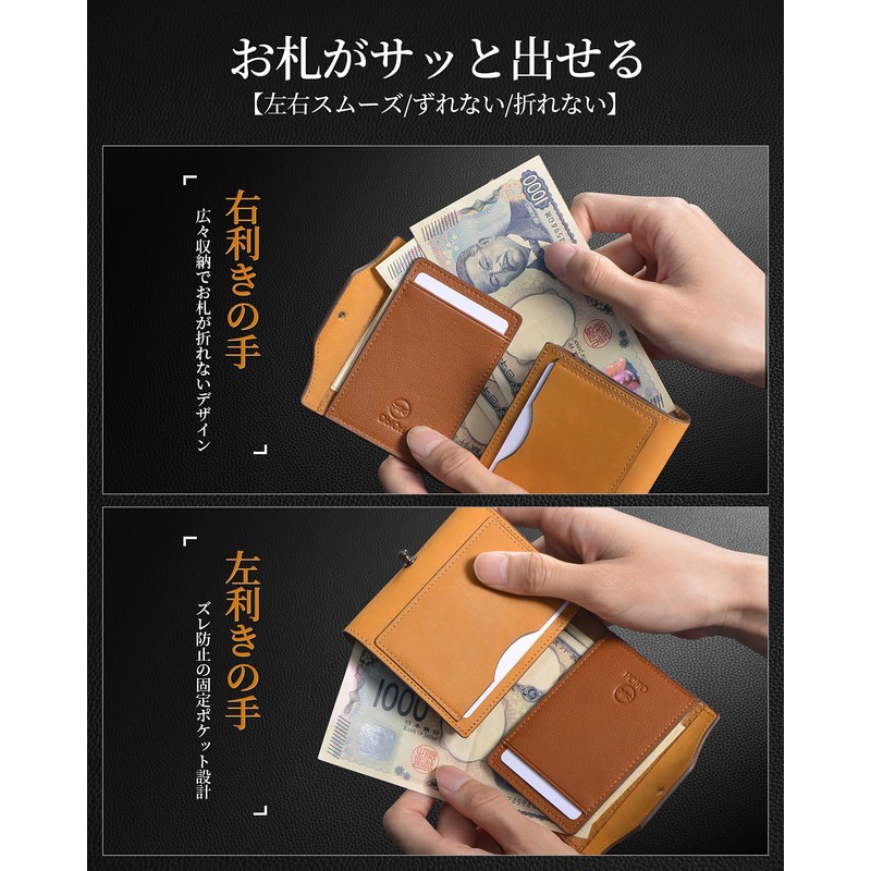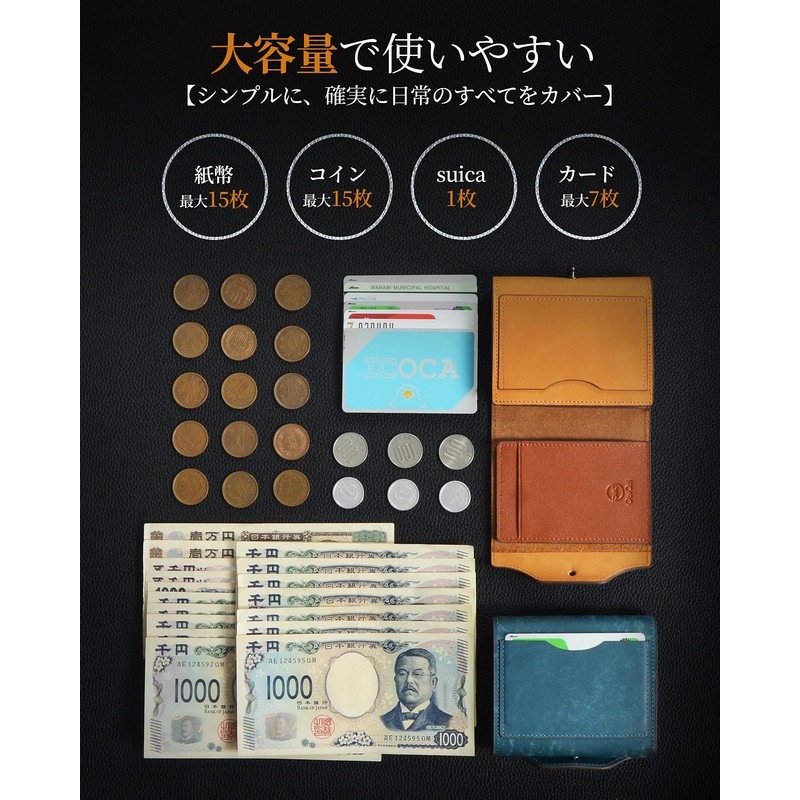 - Large Capacity Wallet: This trifold box wallet can store 15 coins, 15 bills, 7 cards, and 1 Suica in bulk. Secure bill pocket prevents shifting and bending. Designed for both left and right handed operation