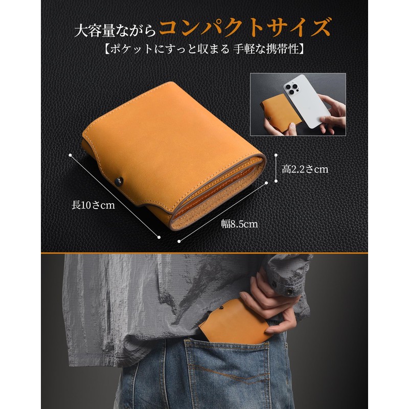 ObiOri Men's Pueblo Leather Genuine Leather Wallet, Made in Japan, Compact, Small, Mini Wallet, Bifold Wallet, Large Capacity, 3-fold, Box-Shaped Coin Purse, Box-shaped, Left Handed, Right-Handed
