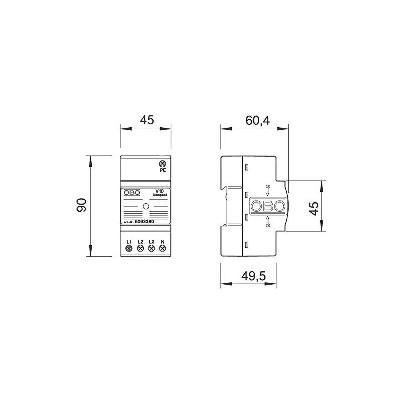 - OBO Bettermann V10 Compact surge conductor for surge protection in sub-distributions according to VDE 0100-443 (IEC 60364-4-44)