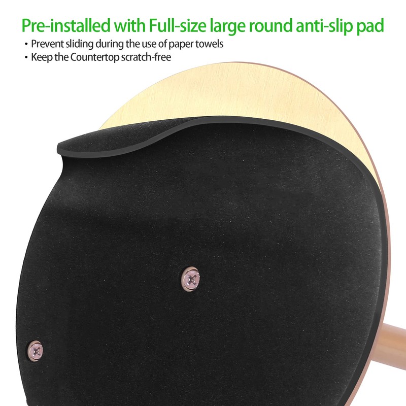 • Anti-slip Design: The bottom of paper towel dispenser is equipped with a full-size large round anti-slip pad to avoid sliding during the use of paper towels, and prevent your precious countertop or table surface from being scratched.