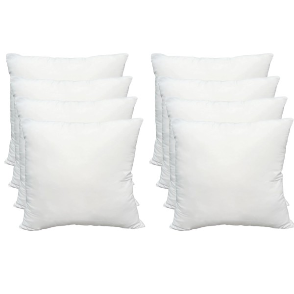 Obruosci Luxury Set of 8 Throw Pillow Inserts, 18 x 18 Hypoallergenic Ultra Soft White Polyester Microfiber Durable Couch Cushion Fillers