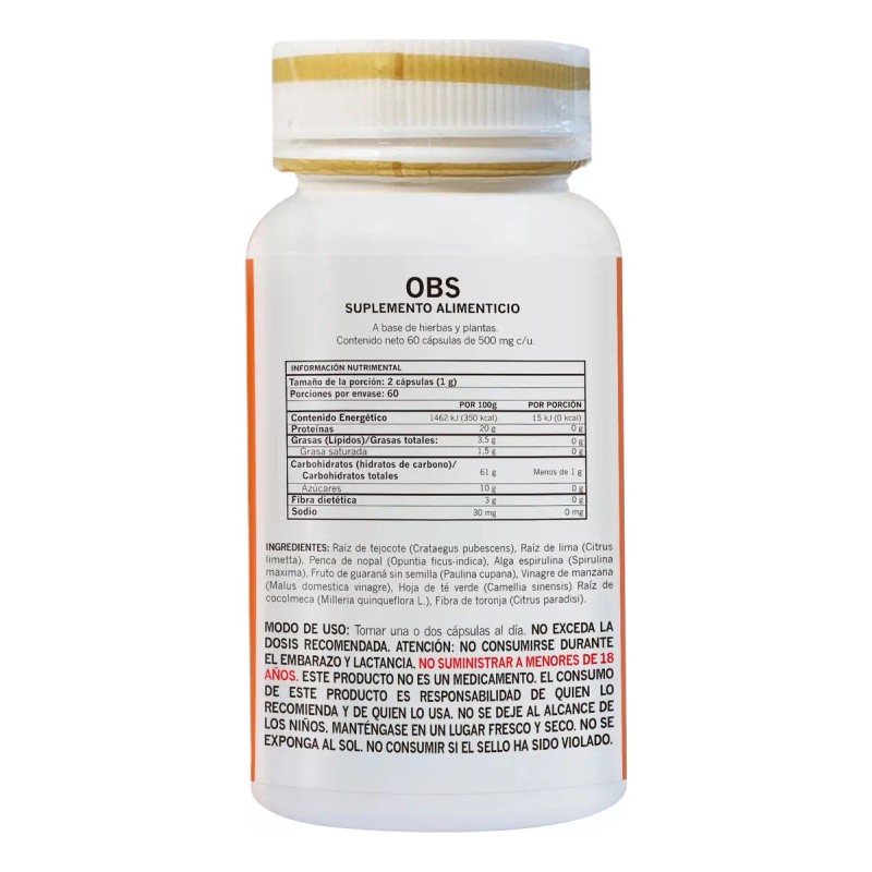 OBS es un suplemento alimenticio formulado con ingredientes naturales como fibra de manzana, nopal y toronja, ricos en pectina (fibra soluble) y glicina (fibra insoluble). Su innovadora fórmula contribuye a mejorar el bienestar integral al actuar de diversas maneras en el organismo: