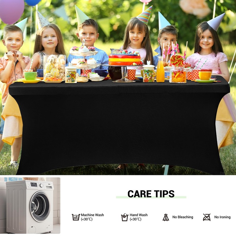 These universal fit foldable table covers offer a stylish and modern appearance to ordinary party table. Crafted with 90-percent polyester and 10-percent spandex material, our stretch tablecloths are that can be laundered over and over again with no damages to their elasticity.
