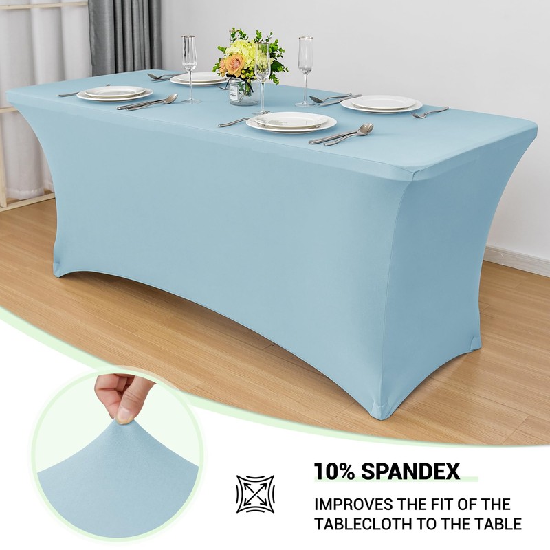 - Stretch Elastic Material: These fitted table cover protectors are made from high quality extra stretchy and sturdy spandex fabric (90 percent polyester and 10 percent spandex)