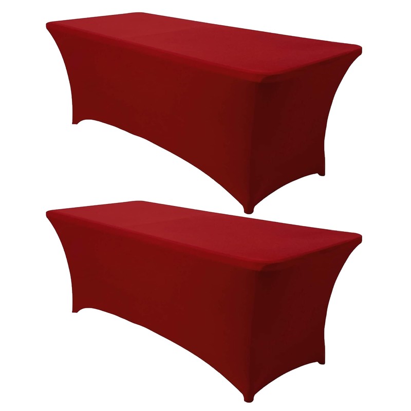 Obstal 6ft Stretch Spandex Table Cover for Standard Folding Tables - 2 Pack Universal Rectangular Fitted Tablecloth Protector for Holiday Party, 72L x 30W x 30H Inches, Christmas Red, 2pc