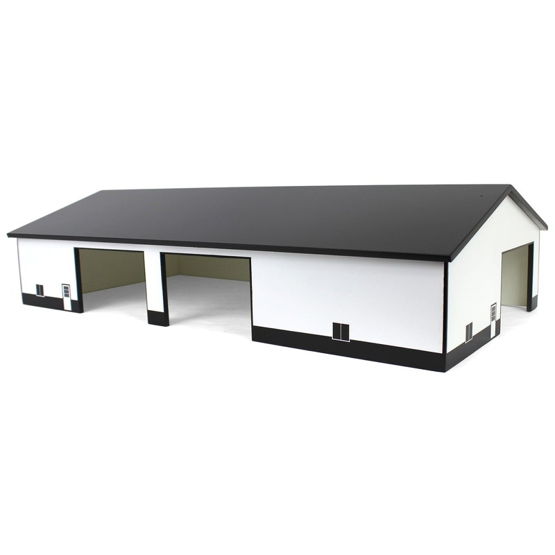 OBT 1/64 White & Black 60ft x 120ft Wood Implement Shed w/ Double Side Doors STA-218