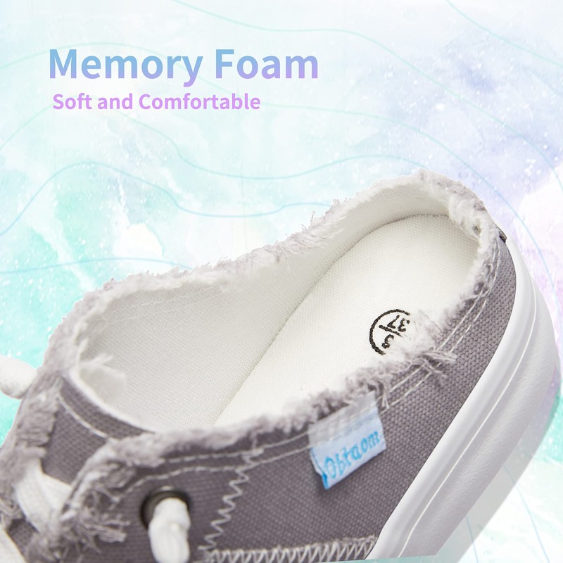 - EASY TAKE ON/OFF:Obtaom Women Canvas Mules underline top line -Clipper disign,Memory Foam Fashion Sneakers easy take on/off that suitable for indoor,shopping and outdoor etc.
