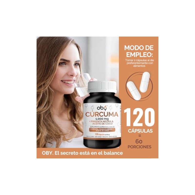 OBY Curcuma 1000 mg Curcuma Capsulas con Pimienta Negra y Aceite de Coco 120 Cpsulas Suplemento Alimenticio