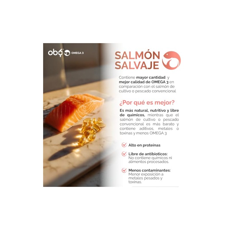 π β OBY Omega 3, 120 softgels de 1300 mg. Aceite Salmon Salvaje Puro Alta concentracion: Omega 3 1000 mg + DHA y EPA. Sin sabor y sin Olor β π
