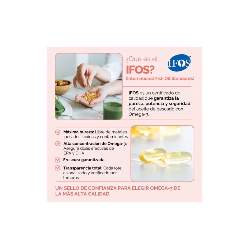 - Máxima pureza y calidad del Aceite de Salmón Salvaje.