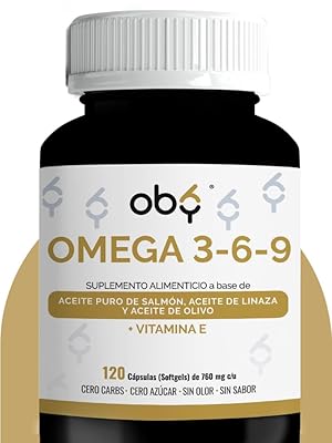 Omega 3 6 9 de OBY es un suplemento alimenticio o suplemento dietario a base de aceite de salmón puro (aceite de pescado o fish oil), aceite de linaza, aceite de olivo, vitamina E, Ácidos grasos EPA y DHA. Viene en frasco de 120 Cápsulas (softgels). Sin olor y sin sabor.
