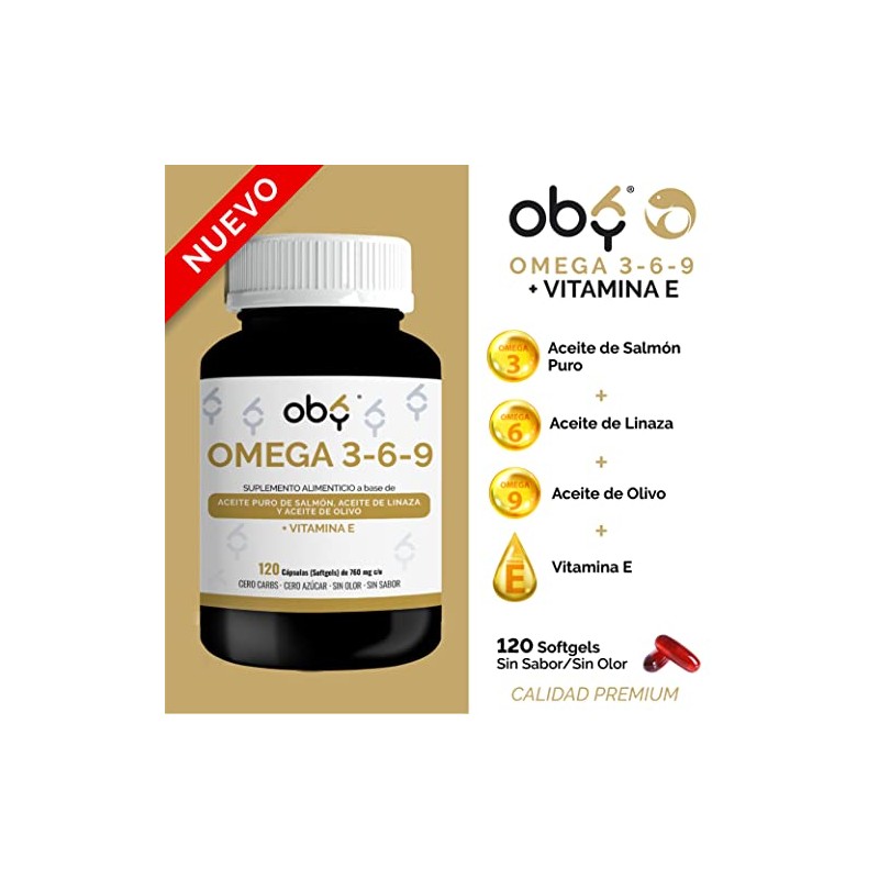 OBY - OBY Omega 3 + Vitamina E, Omega 6 y Omega 9. 120 Softgels. Omega 3 6 9 capsulas: Aceites Puros de Salmon, Linaza, Olivo, con DHA y EPA. Sin metales pesados. Suplemento alimenticio Sin sabor y Sin olor. đź’Ż Autenticidad y máxima durabilidad comprobadas. Construcción robusta y atención al detalle. đź’ť Perfecto como regalo especial. Ideal para quienes buscan lo mejor en calidad y estilo. Producto auténtico con satisfacción total asegurada. ¡No te quedes sin el tuyo y aprovecha esta oportunidad única!