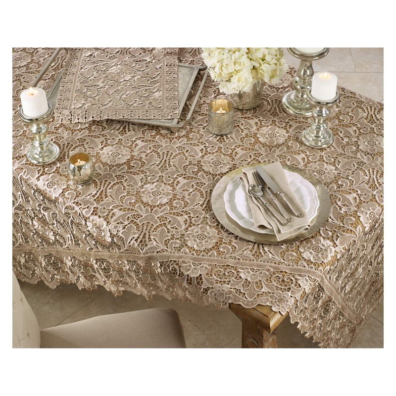 - Ecru Beige Vintage Style All Over Venice Lace Dinner Tablecloth, 67" X 102" Rectangular, 100% Polyester, (1 Piece).