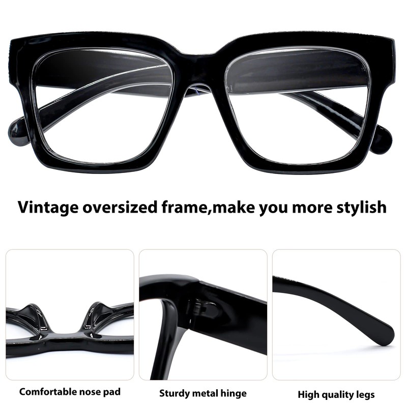- STYLISH OVERSIZED READERS: The 2.25 Large reading glasses for women with retro square shape can modify your facial curves, keeps you looking stylish and younger. Large but not huge, fit well for most of the face shape. preventing readers from slipping off your face. Great fashion accessory for daily outfit. Helps you get tons of compliments.