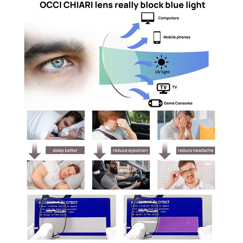- Mens blue light blocking reading glasses : Brown computer readers 2.0 can filter harmful blue light effectively. A great choice for someone who need to spend long time in front of screens.(TV/computers/phone.) OCCI CHIARI blue light readers will reduce eye fatigue,help you enjoy digital time and sleep better.