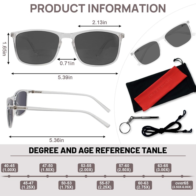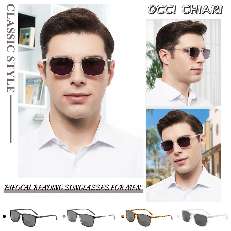- UV400 protection sunglasses: OCCI CHIARI bifocal reading sunglasses for men 2.0 provide all day protection from the sun light and the ultraviolet light. Effectively block UVA and UVB, reduce the glare of the sun.Lenses provide 100% UV400 protection and also scratch resistant. Bring a comfortable wearing experience.