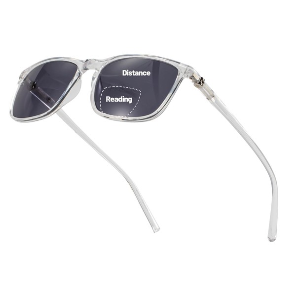 OCCI CHIARI Bifocal Reading Sunglasses for Men 200 UV400 Protection Large Square Sun Readers 1.0 1.5 2.0 2.5 3.0 3.5 (Clear)