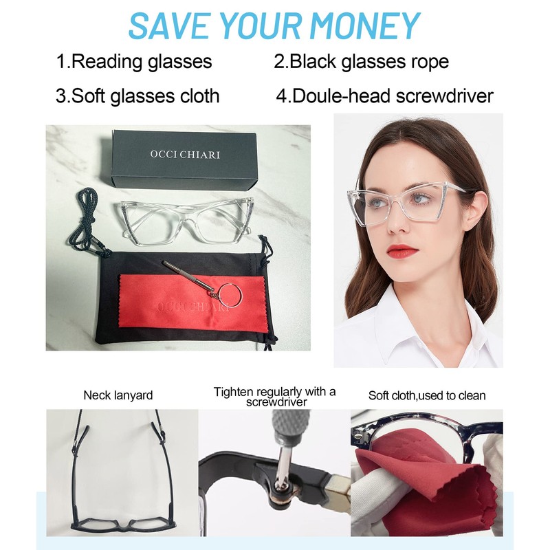 - Crystal clear lens :OCCI CHIARI reading glasses has optical,strong,durable frame and clear acrylic ,non-polarized, square lenses.The acrylic lenses are clear enough. This women’s sturdy reading glasses have A-class clear lenses which have higher precision as well ,makes the vision clear,give you a very big and sharp view,weren't so reflective and scratch resistant lens ,this reader glasses have 1.0x, 1.5x, 2.0x, 2.50x 3.0x 3.5x 4.0x 5.0x 6.0x for selection.