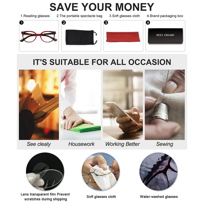 OCCI CHIARI Blue Light Magnifying Glasses 2.25 Durable Readers 1.0 1.25 1.5 1.75 2.0 2.25 2.5 2.75 3.0 3.5 4.0 5.0 6.0