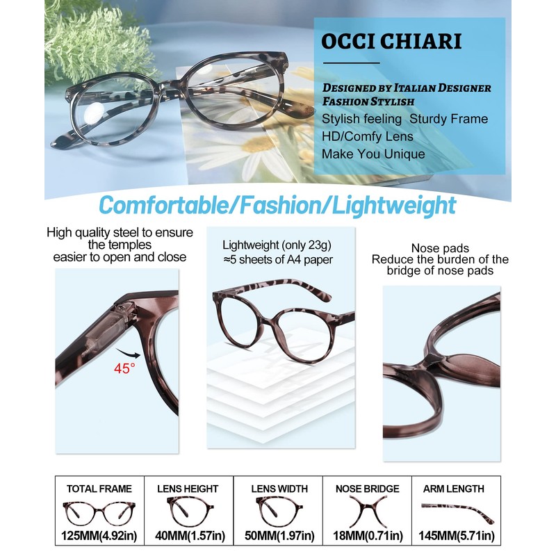 OCCI CHIARI Blue Light Reading Glasses 3.5 Womens Readers 1.0 1.25 1.5 1.75 2.0 2.25 2.5 2.75 3.0 3.5 4.0 5.0 6.0