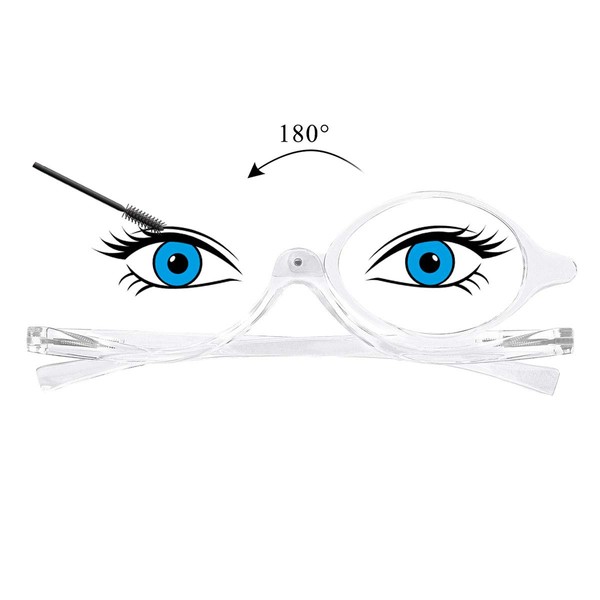 - INSTRUCTION for USE:Our make-up reading glasses for women will help to avoid any makeup trouble,like crooked eye shadow,eyelines,mascara and lipstick.When you try to masquerade your left eyes, you need to rotate the lens to your right, and vice versa.Make-up readers with switchable lens avoid any uneven makeup.Give yourself flawless and more professional makeup look.