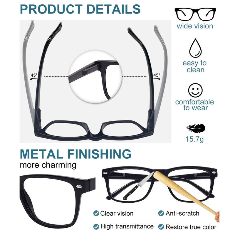 Classic square style frame: Ultra-light and flexible frame material for durability and comfortable long-term wearing. Casual frame design keeps you looking professional and sharp in modern busy life.