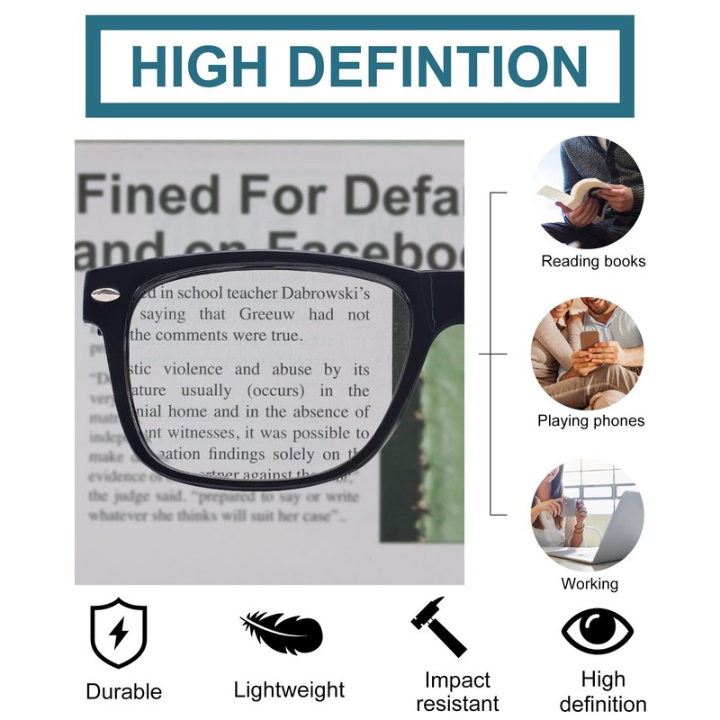 • Note: We put a lens film on each lens , please tear it off before use. Quality Lense : Reading Glasses for men and women Magnification Strength:0.0,+1.0,+1.25,+1.5,+1.75,+2.0,+2.25,+2.5,+2.75,+3.0,+3.5,+4.0,+5.0+6.0.A +++ HD lens,Accurate power, imported materials.The reading glasses for men and women use high-quality imported materials to avoid the problem of easy fracture.aspherical optical lens, accurate diopter, good for your vision.The lens is not easy to scratch and wear-resistant.