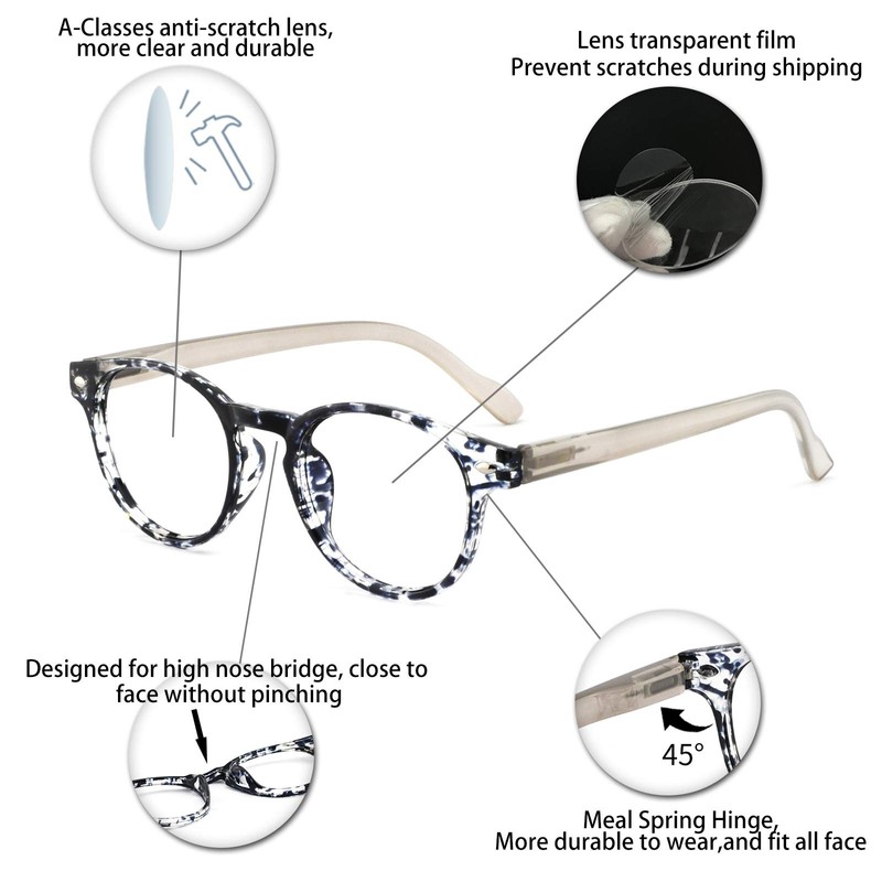 • Make your world clear :This glasses is very fashionable,modern design wearing these reading glasses are suitable for anywhere,no matter when you at home,in bed,at the office,means you'll always look sharp,and see sharper! Reading glasses can help you see nearby things more convenient. For example,when you read a book, do needlework,or use a mobile phone,you can wear reading glasses to make your line of sight clearer.