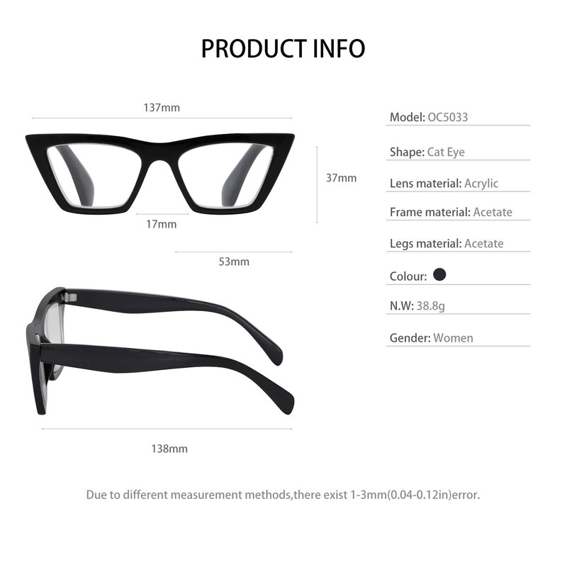 - Clear lens/good magnification :Made from acetate,is clear enough and easy to Clean.the wider lenses make it easier for you to read without moving your head ,and use them daily for small print reading,makes the vision clear,give you a very big and sharp view
