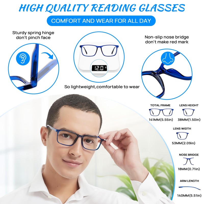 - Eye protection,UV400 blue light filter: 100% UV400 eye protection effectively & blocks glares reflected by mirrors, shiny or polished materials or any other kind of sun rays reflection, give you a natural & clear vision; sturdy ,scratch resistant lens and shatterproof; bring you good visual experience when you are reading ,driving ,working or other outdoor activities,perfect for protecting your eyes while reading to preserve your eye health