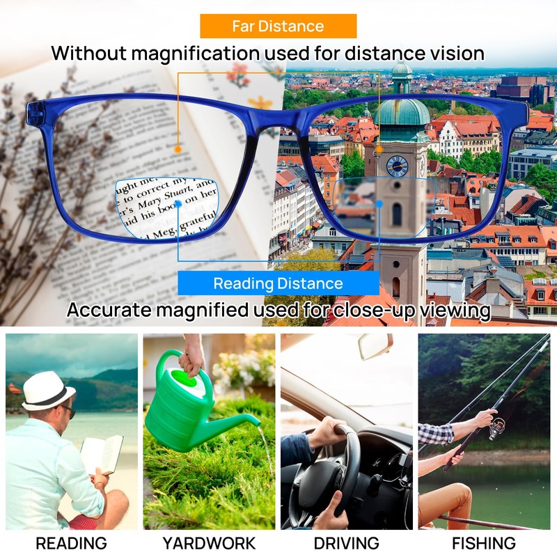 - Bifocal lenses for 2 focus vision :Regular sunglasses on top with,help you to look far; bottom inner corner provide a perfect sized magnifying section, help you to read and work by magnifying small print,perfect for outdoor reading and distance viewing. no longer will you need to carry multiple pairs of glasses