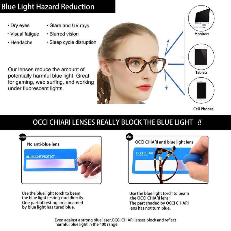 OCCI CHIARI Progressive Multifocus Women Cateye Reading Glasses Anti Blue Lig...